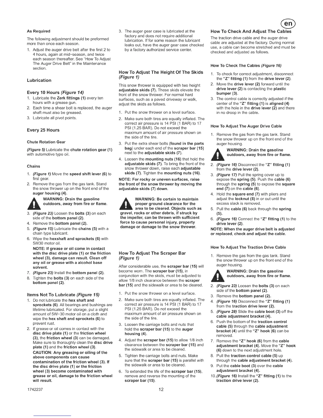 4. Adjust the scraper bar (15) to allow 1/8 inch