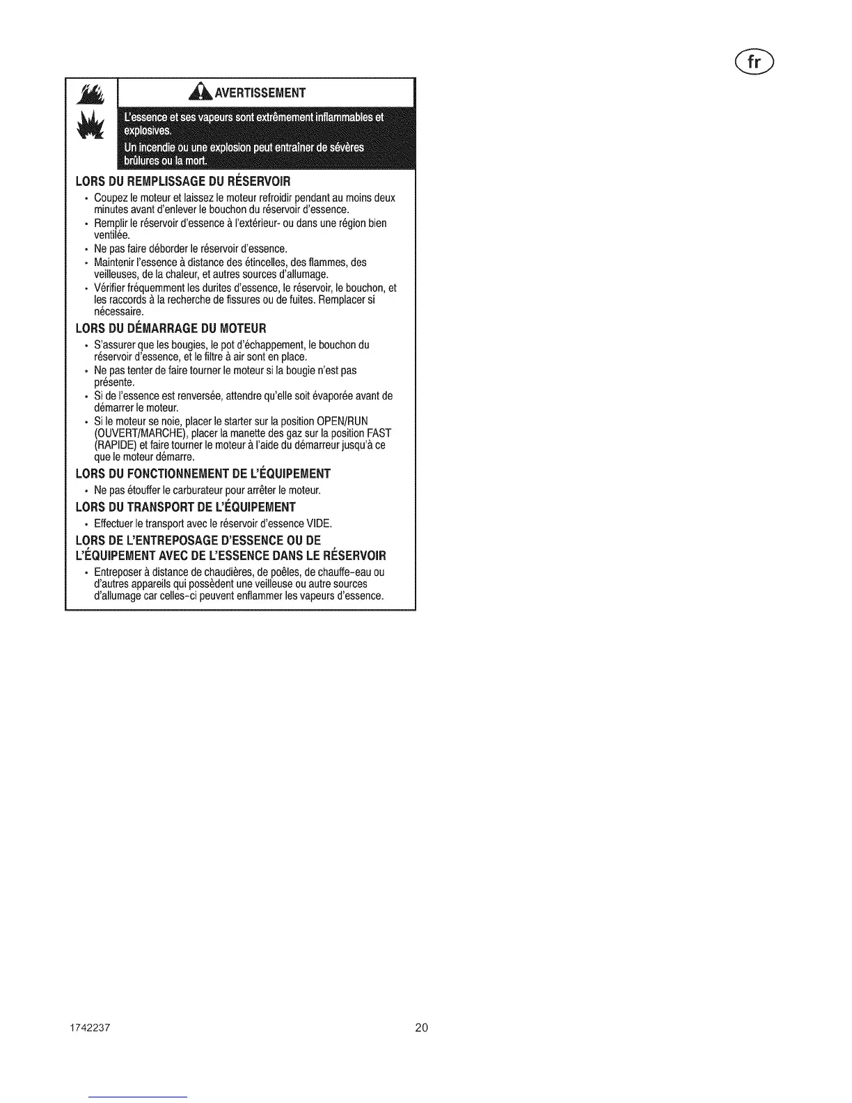 • Remptirle r6servoird'essence & I'ext6rieur- ou dans une r6gion bien