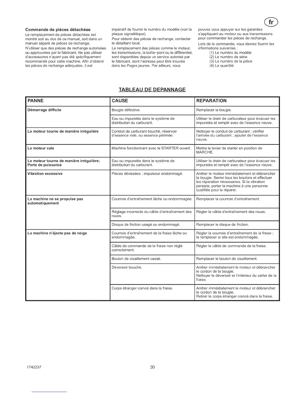 manuel s6par6 de pi6ces de rechange.