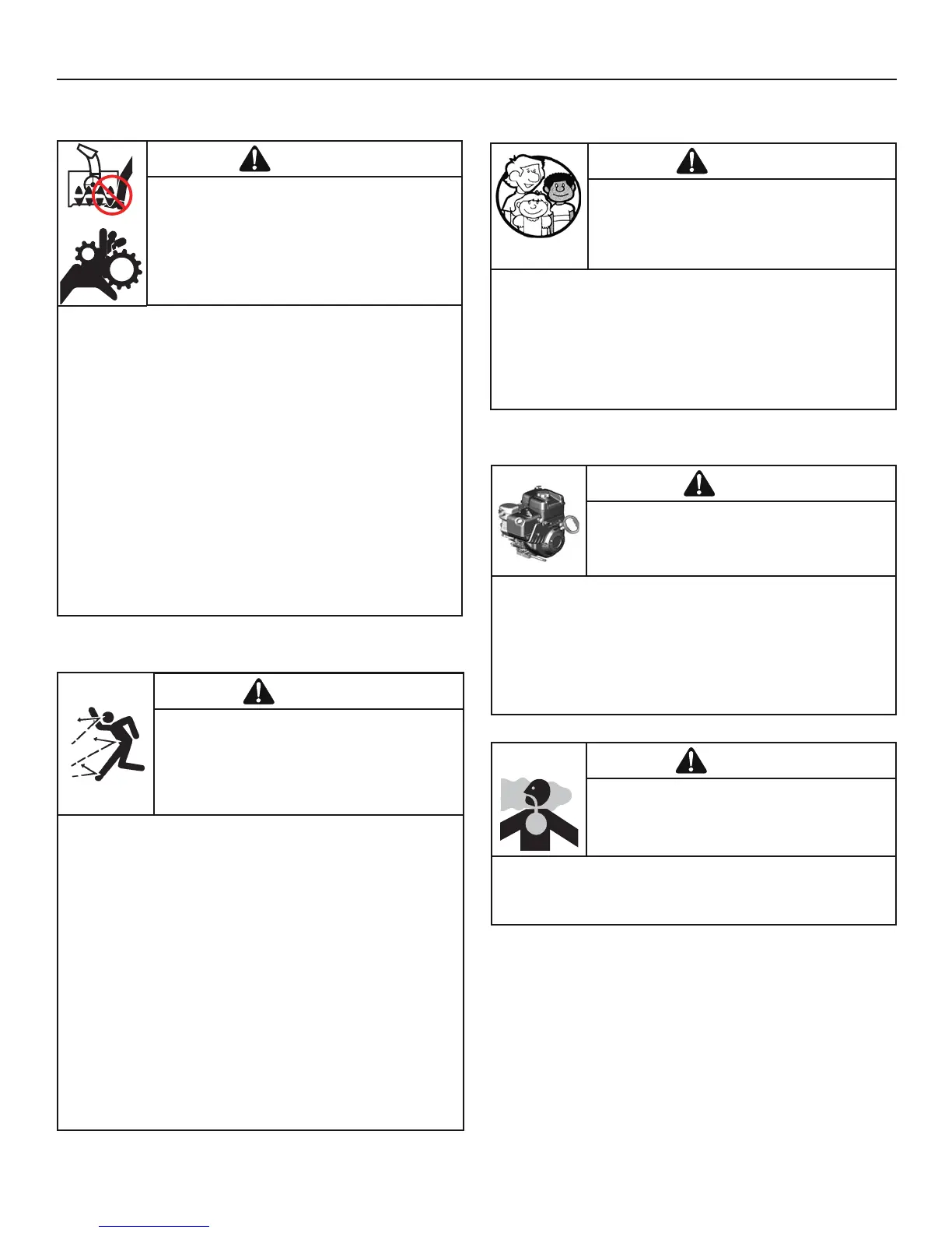 • Gardez tout vêtement ample éloigné du devant de la souffleuse à neige et de