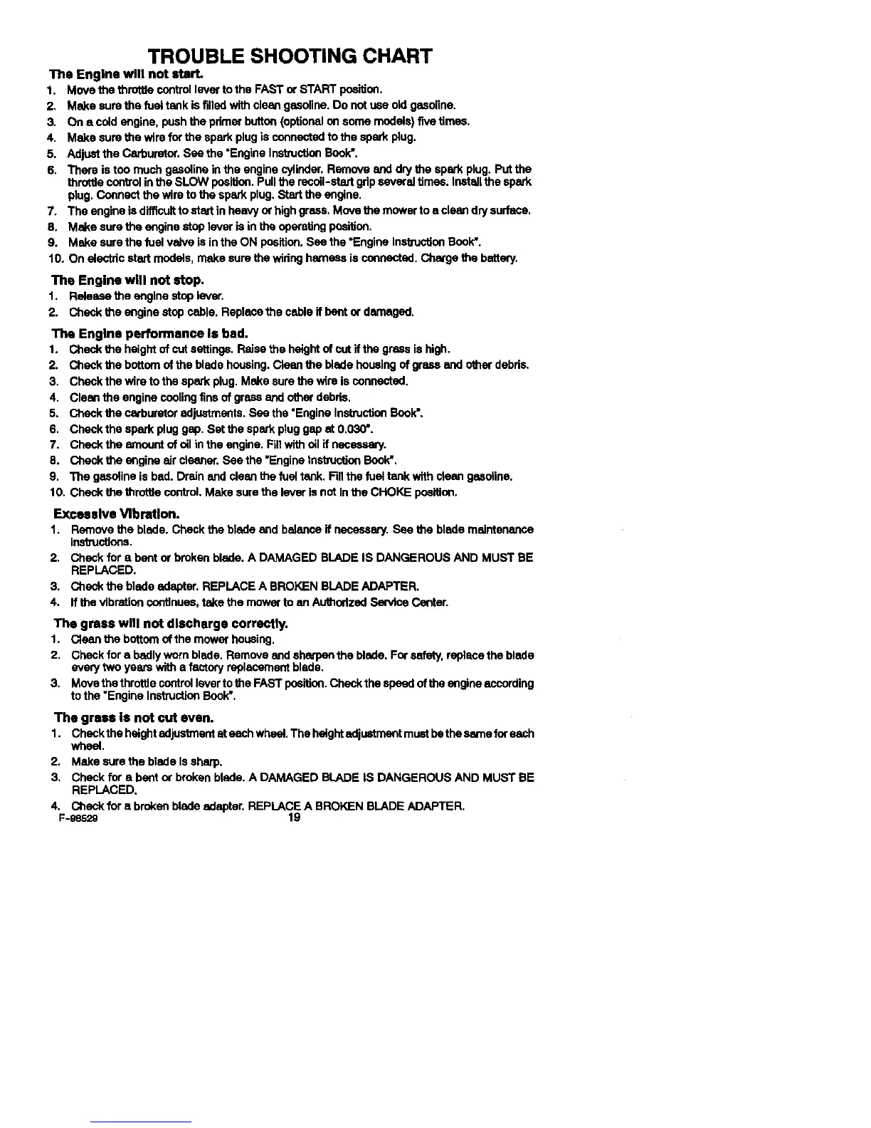 7. The engineis difficultto startin heavyorhighgrass.Movethe mower toa cleandry surface.