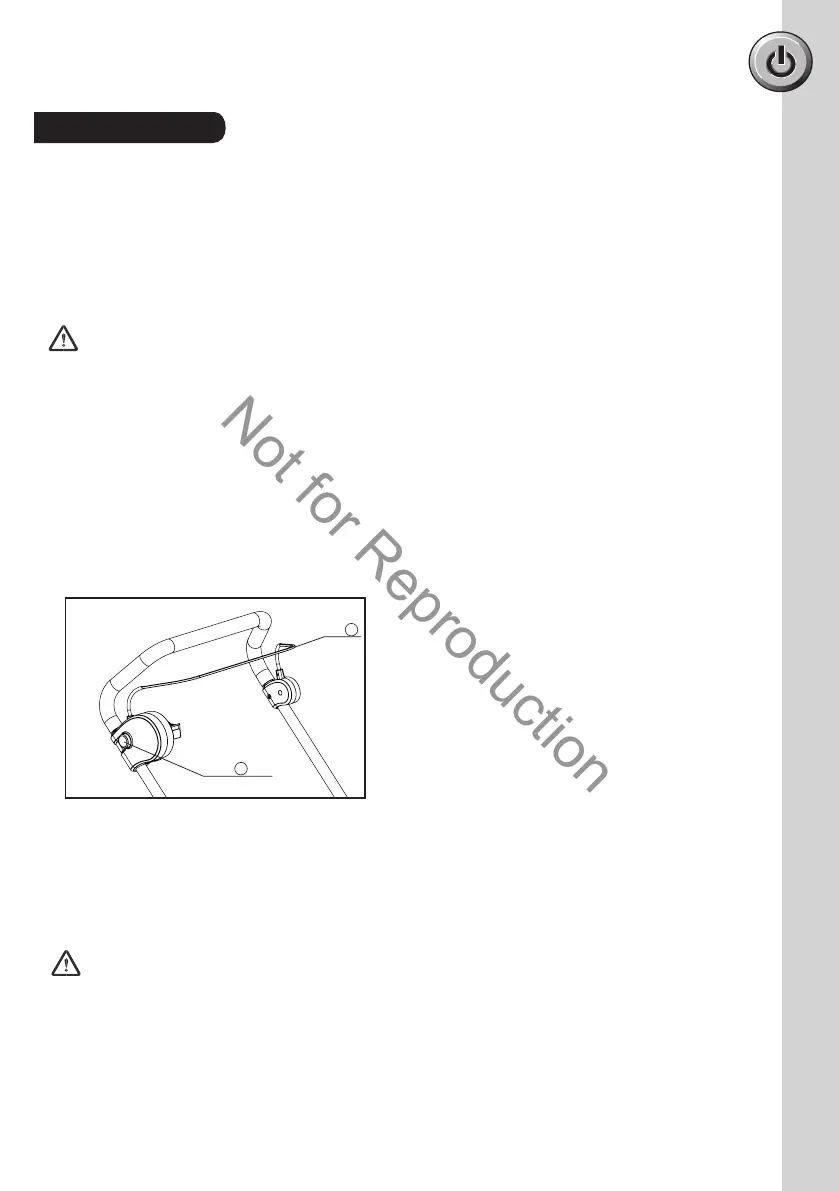 • Pull the bail (2) upward to the handle to start the mower and release the button with