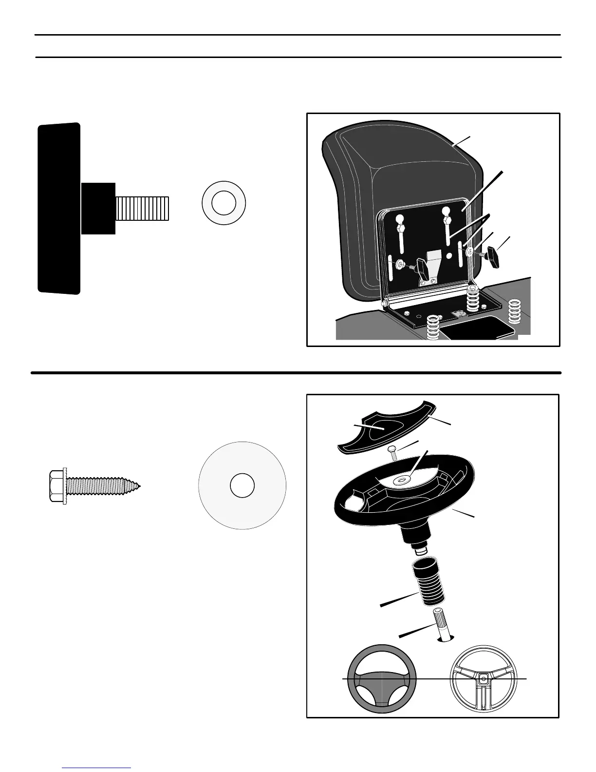 4. Use the fasteners shown above to secure the steering wheel.