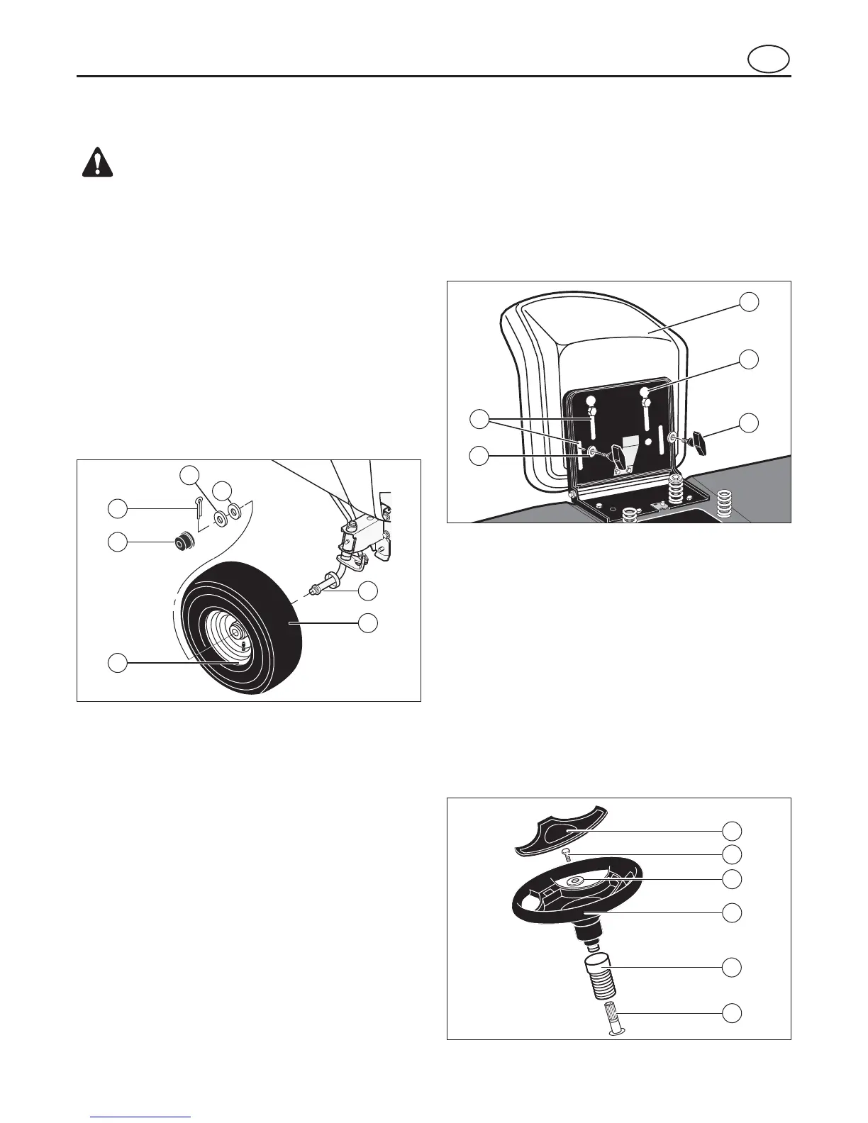 l’esterno del trattore. Inserire la ruota anteriore (1)