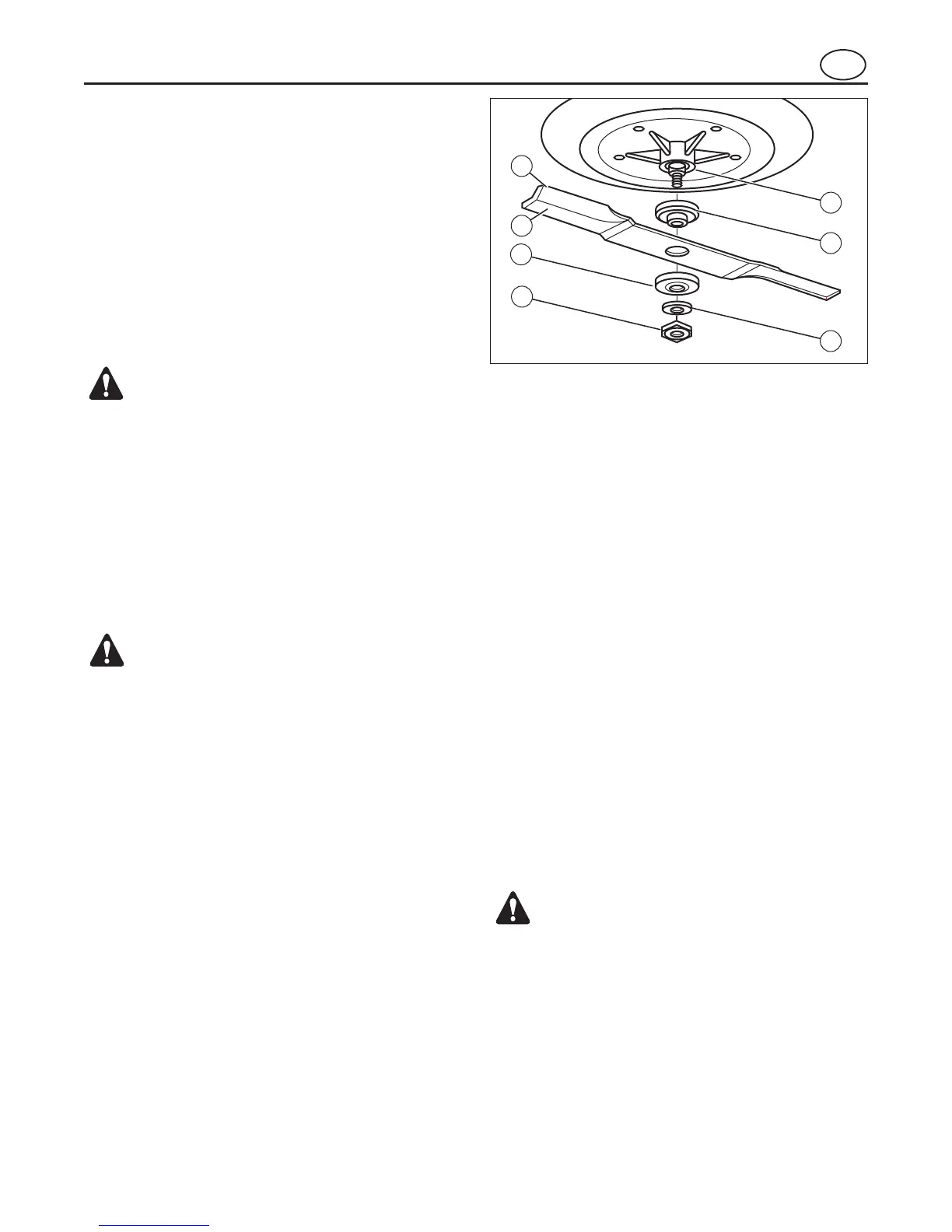 8. Fissare la lama con la rondella e dado originali (3).