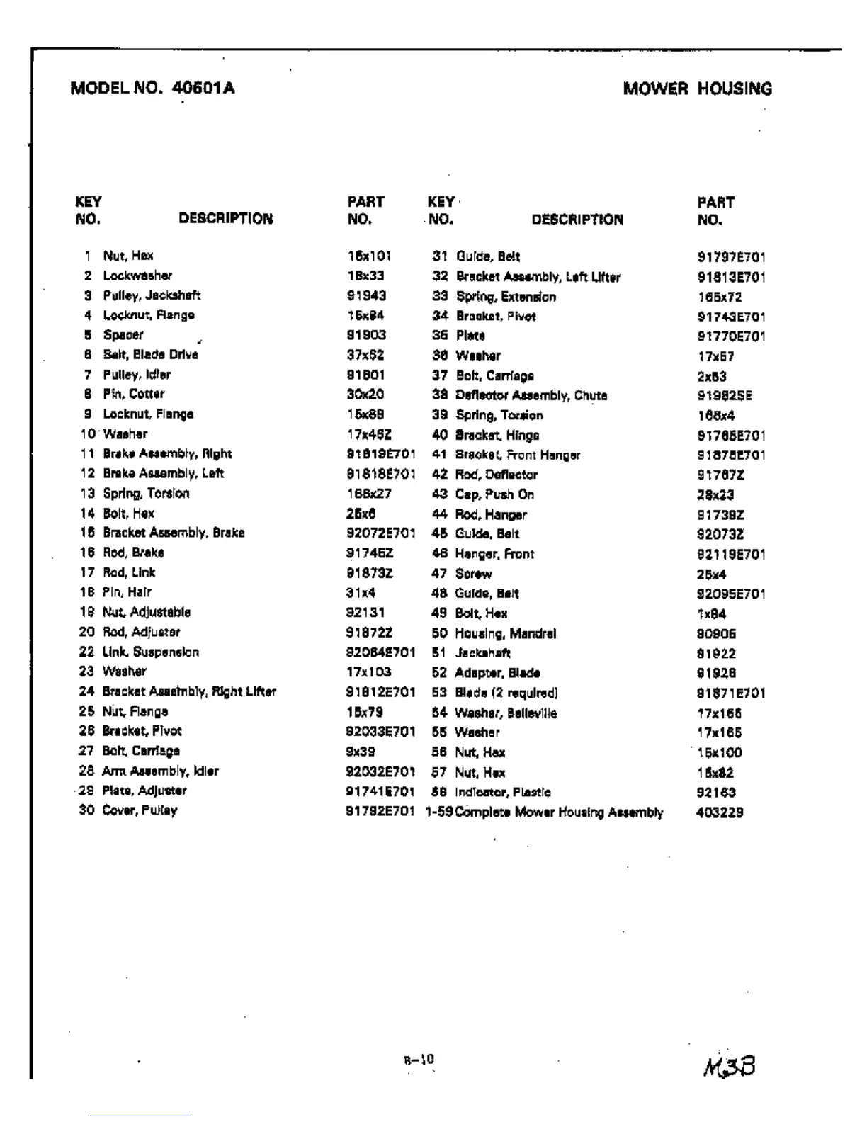 Illustrated Parts Lookup - 40601A, 012 - MOWER HOUSING