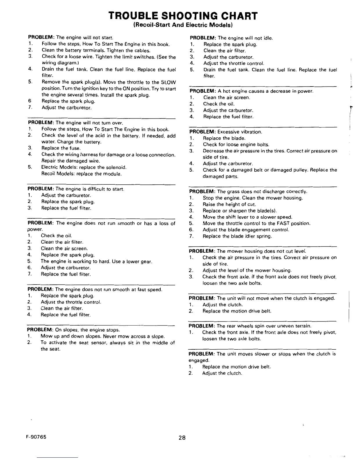 Murray 40603B - Troubleshooting Chart