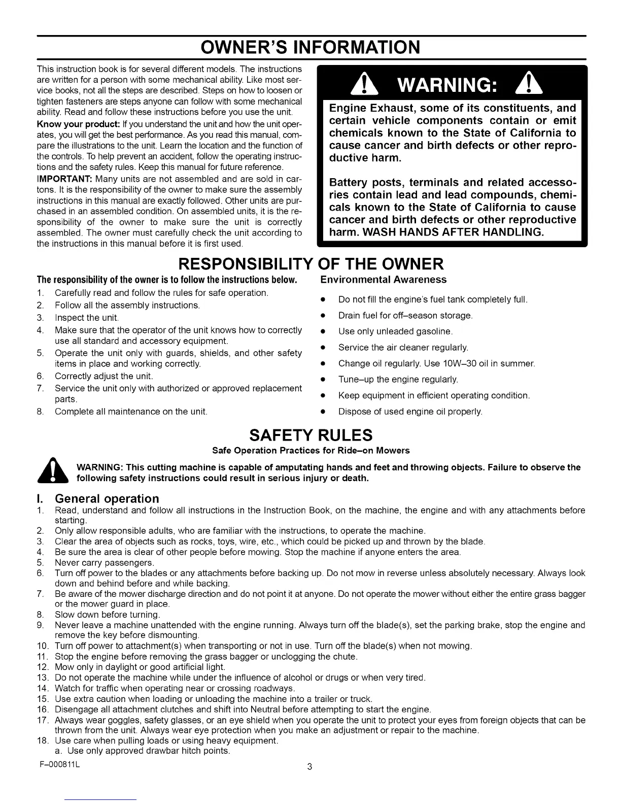 Read, understand and follow all instructions in the Instruction Book, on the machine, the engine and with any attachments before