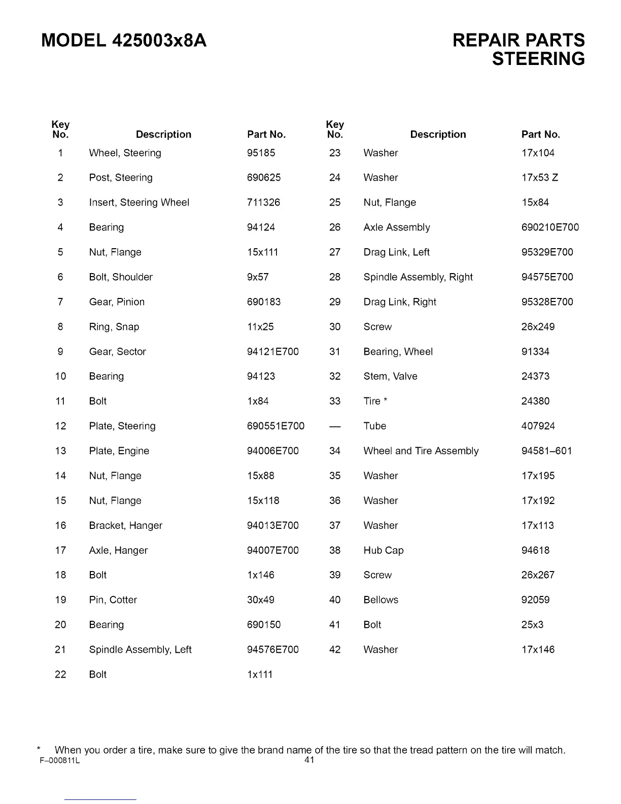 21 Spindle Assembly, Left 94576E700 42 Washer 17x146