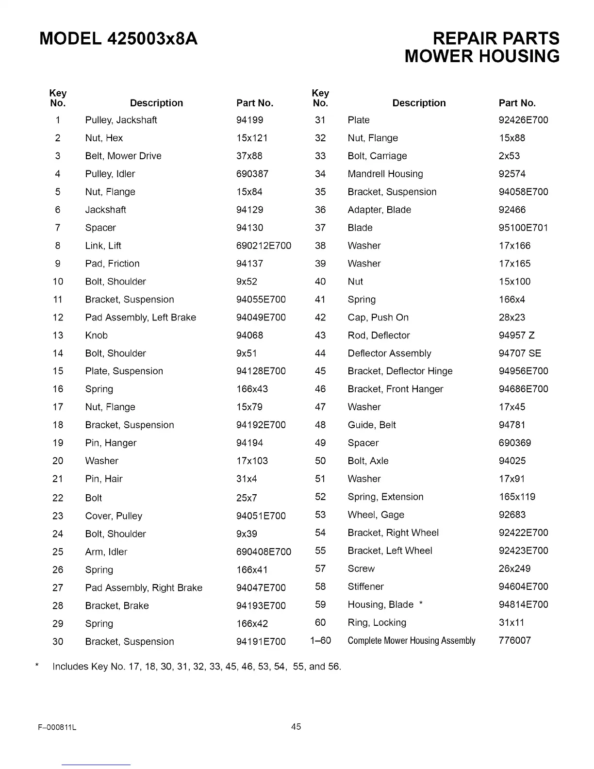 Includes Key No. 17, 18, 30, 31,32, 33, 45, 46, 53, 54, 55, and 56.