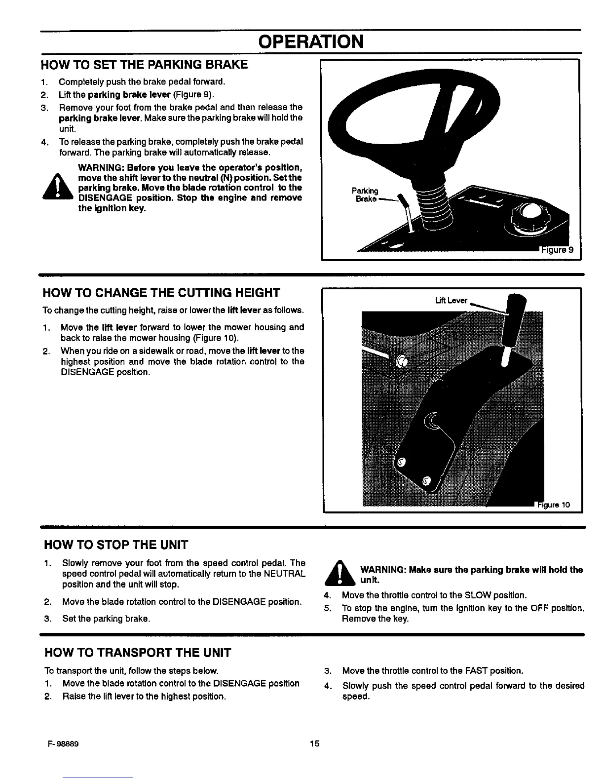 2. Lift the parking brake lever (Figure 9).