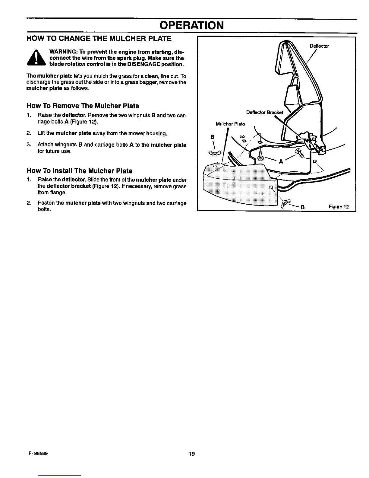 the deflector bracket (Figure 12). Ifnecessary, remove grass