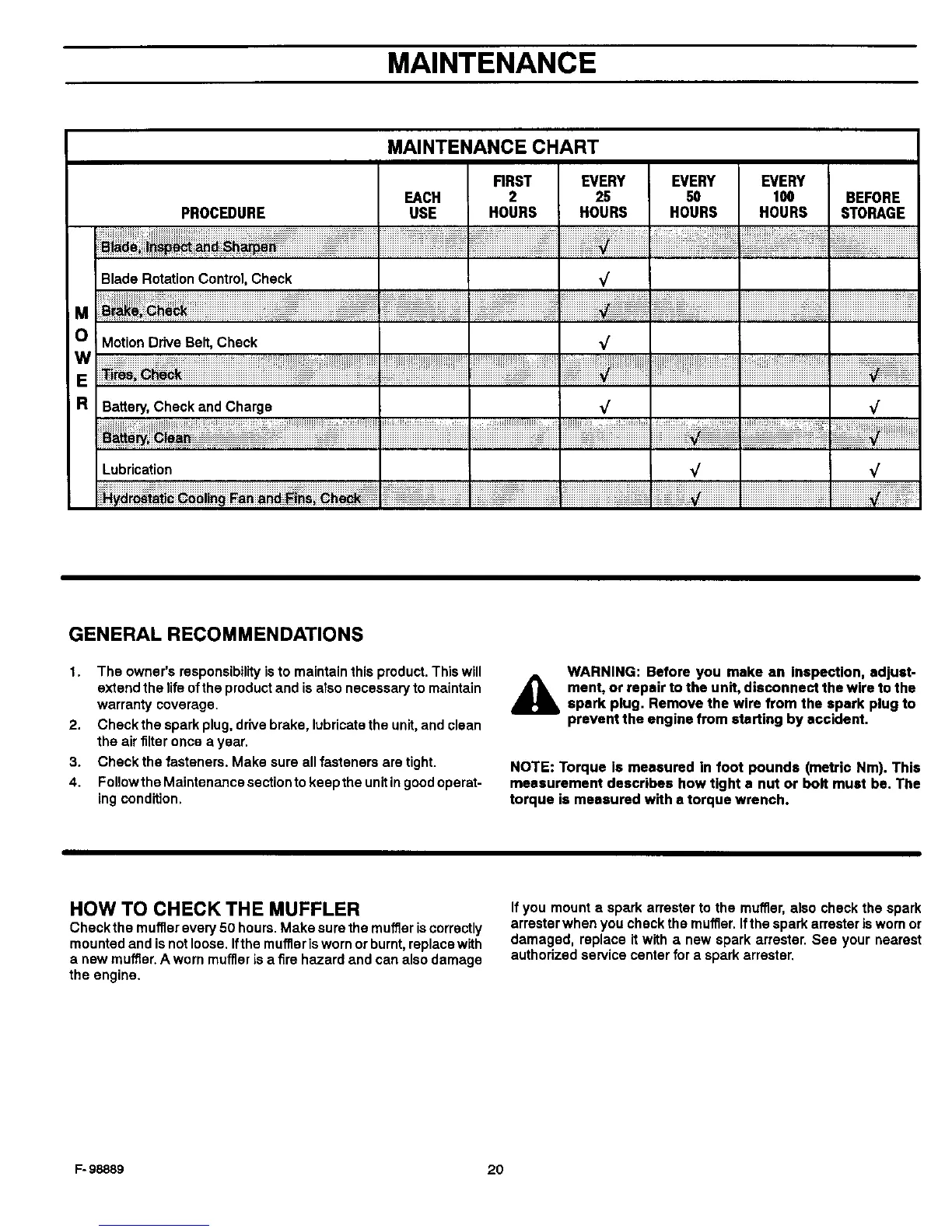 Check the mufflerevery 50 hours. Make sure the muffler iscorrectly