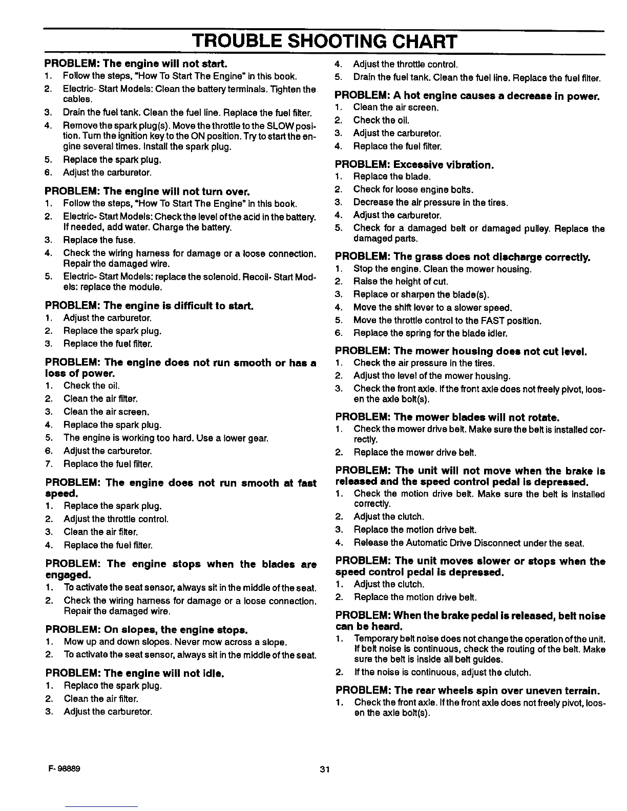 TROUBLE SHOOTING CHART