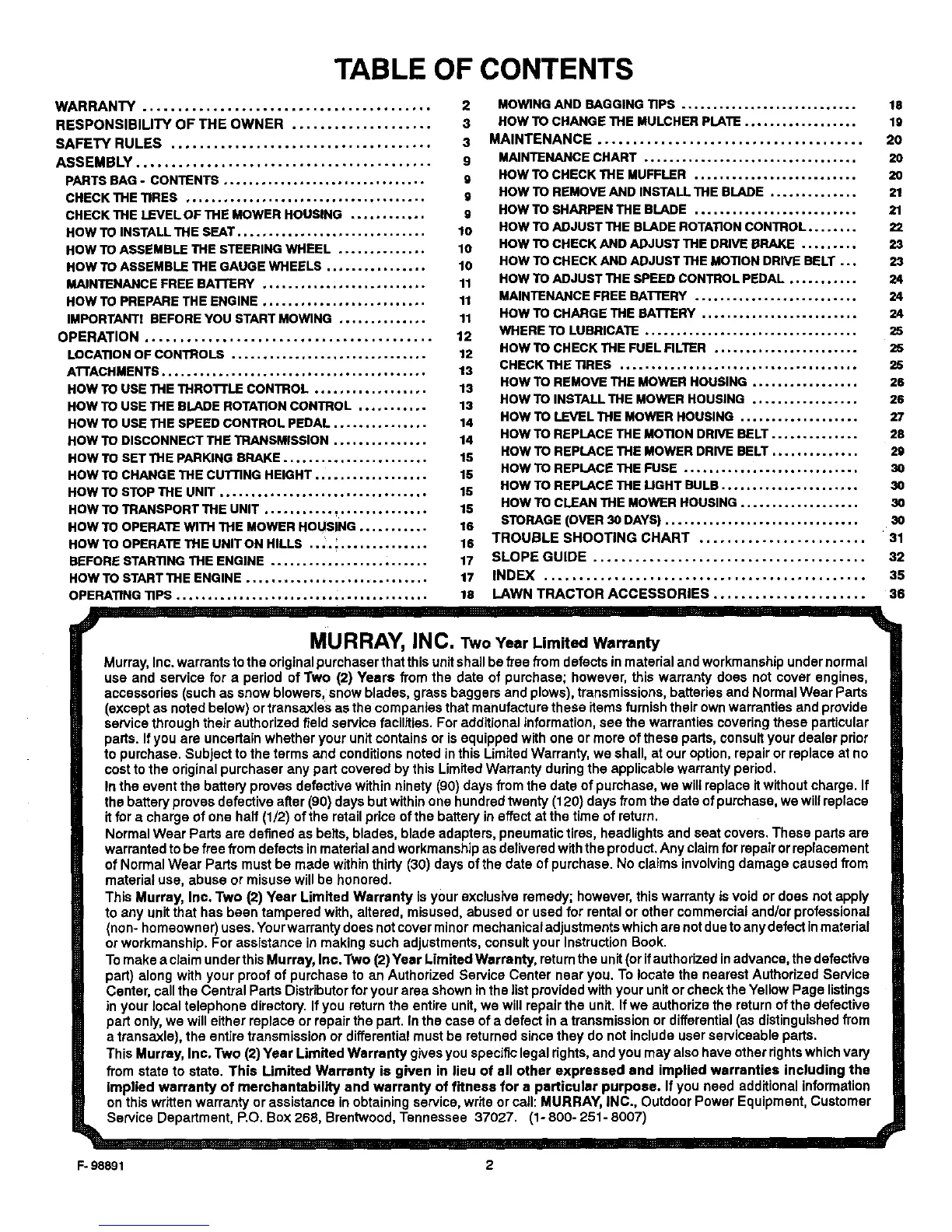 Murray, Inc. warrants to the originalpurchaser that this unitshall be free from defects in material and workmanship under normal