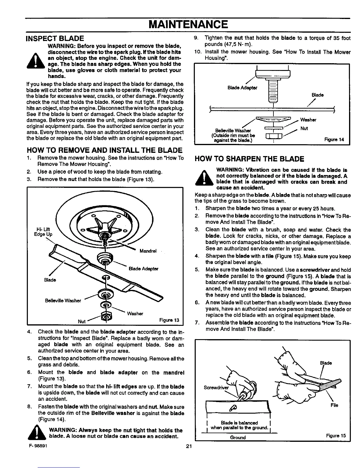 structions for "Inspect Blade". Replace a badly worn or dam-