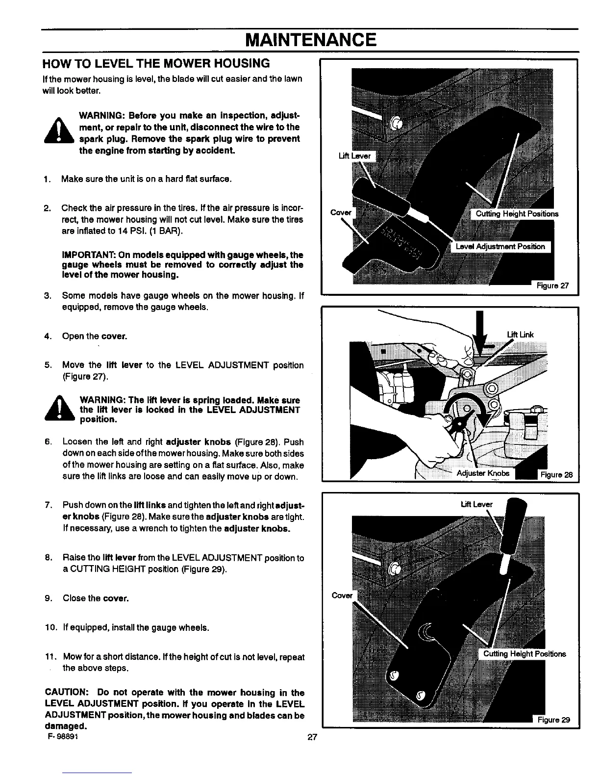 Ifthe mower housing is level, the blade will cut easier and the lawn