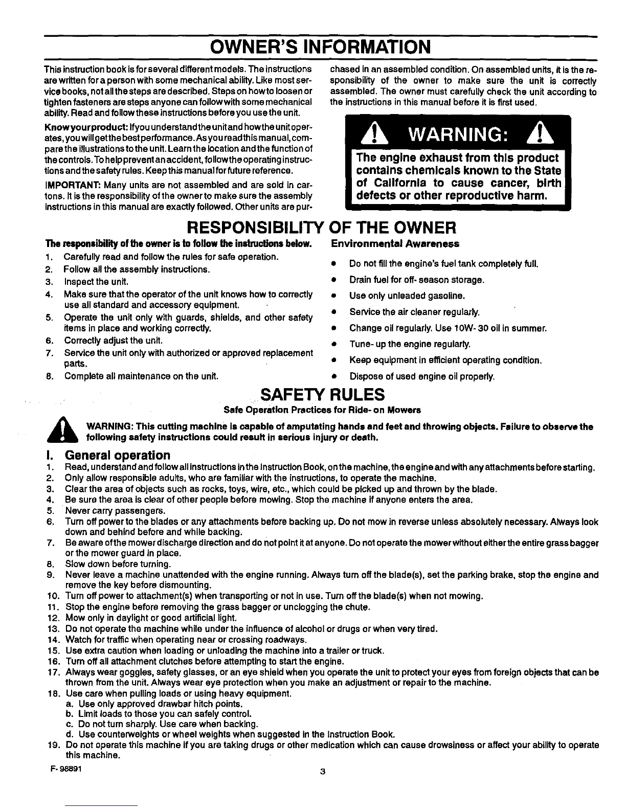 Safe Operation Practices for Ride- on Mower•
