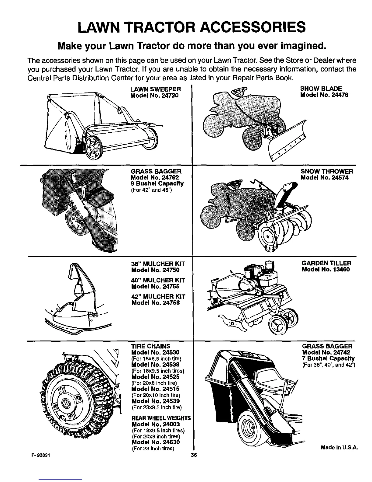 The accessories shown on this page can be used on your Lawn Tractor. See the Store or Dealer where