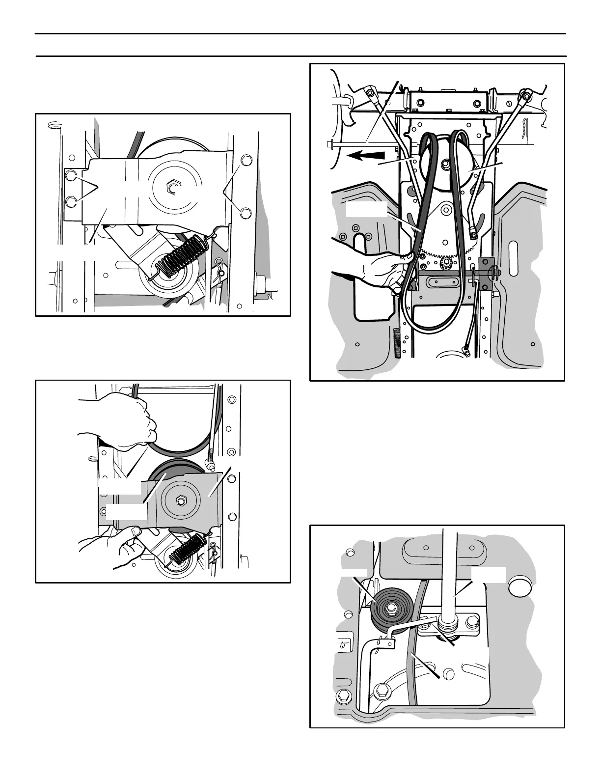 13. Slide the engine drive belt toward the front of the unit. When