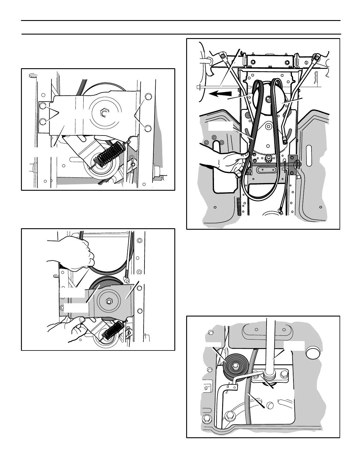 13. Slide the engine drive belt toward the front of the unit. When