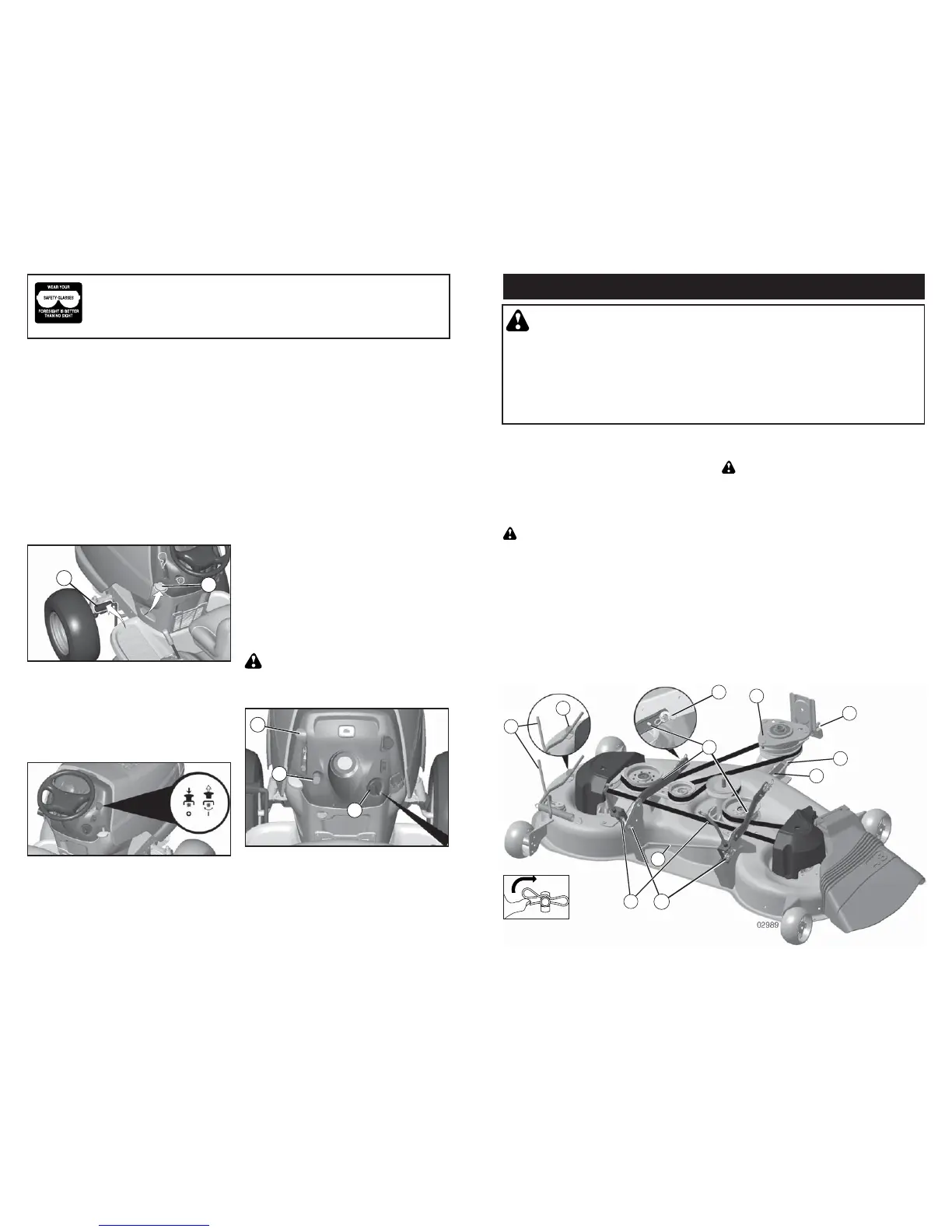 or eye shields while operating your tractor or per form ing any ad just ments