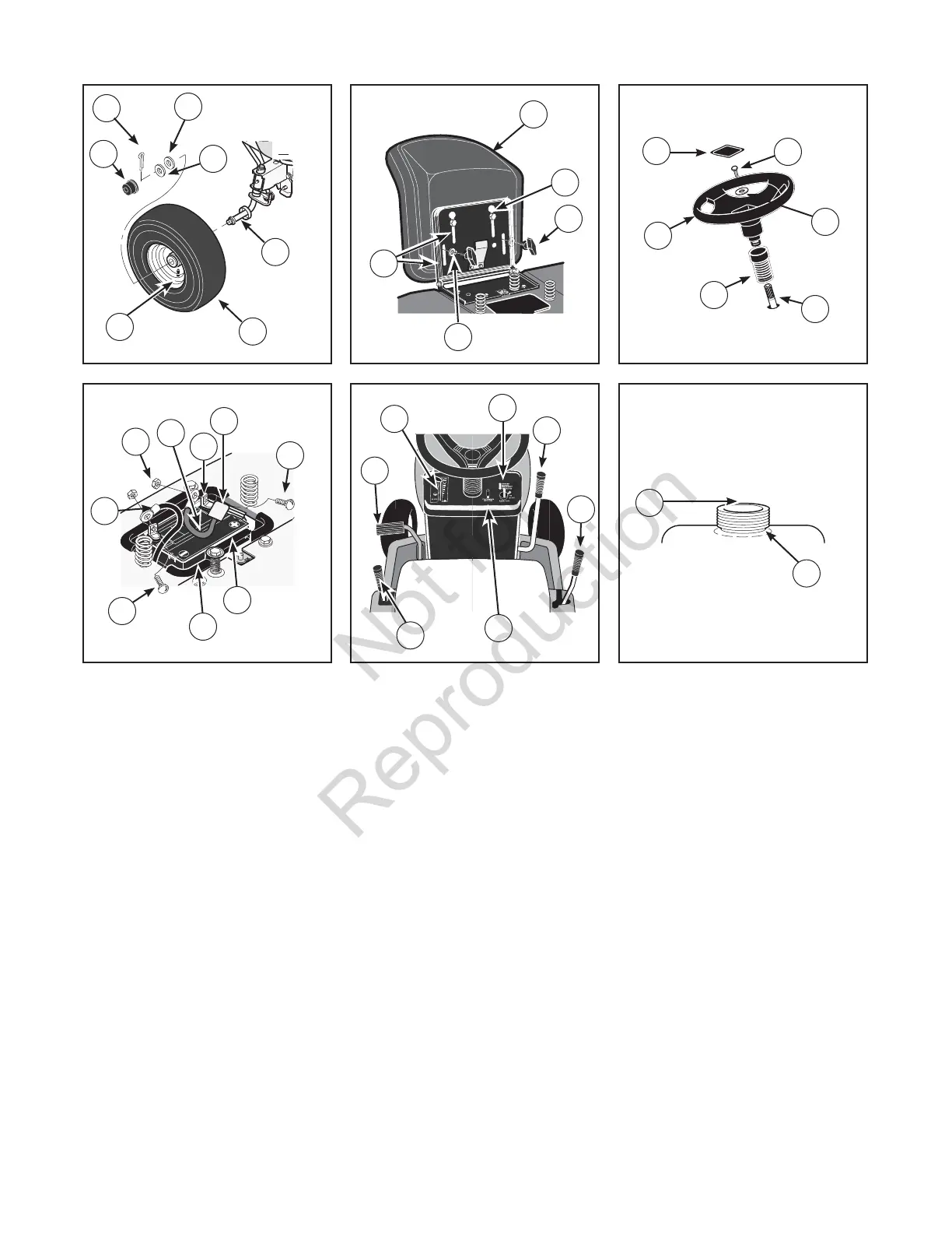 Murray 7800409 - Assembly Procedures; Install Front Wheels; Install the Seat; Assemble Steering Wheel