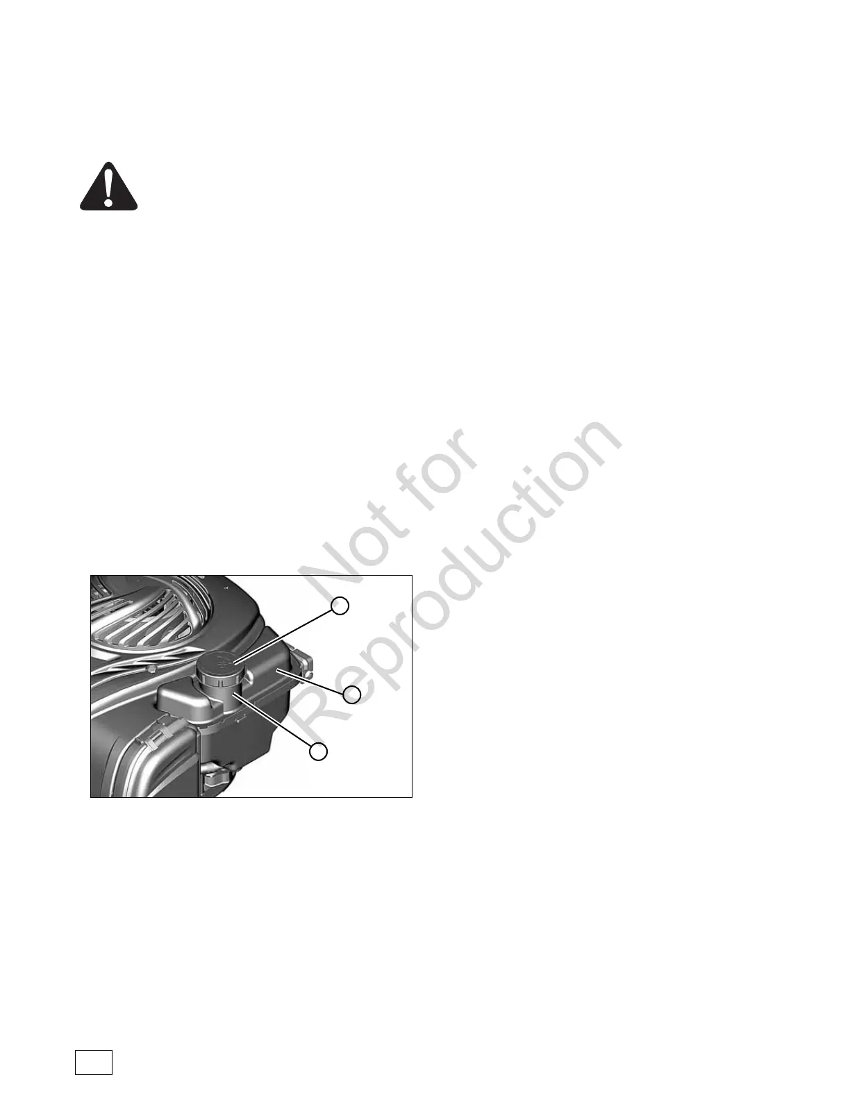 2. Fill the fuel tank (B) with fuel. To allow for expansion of