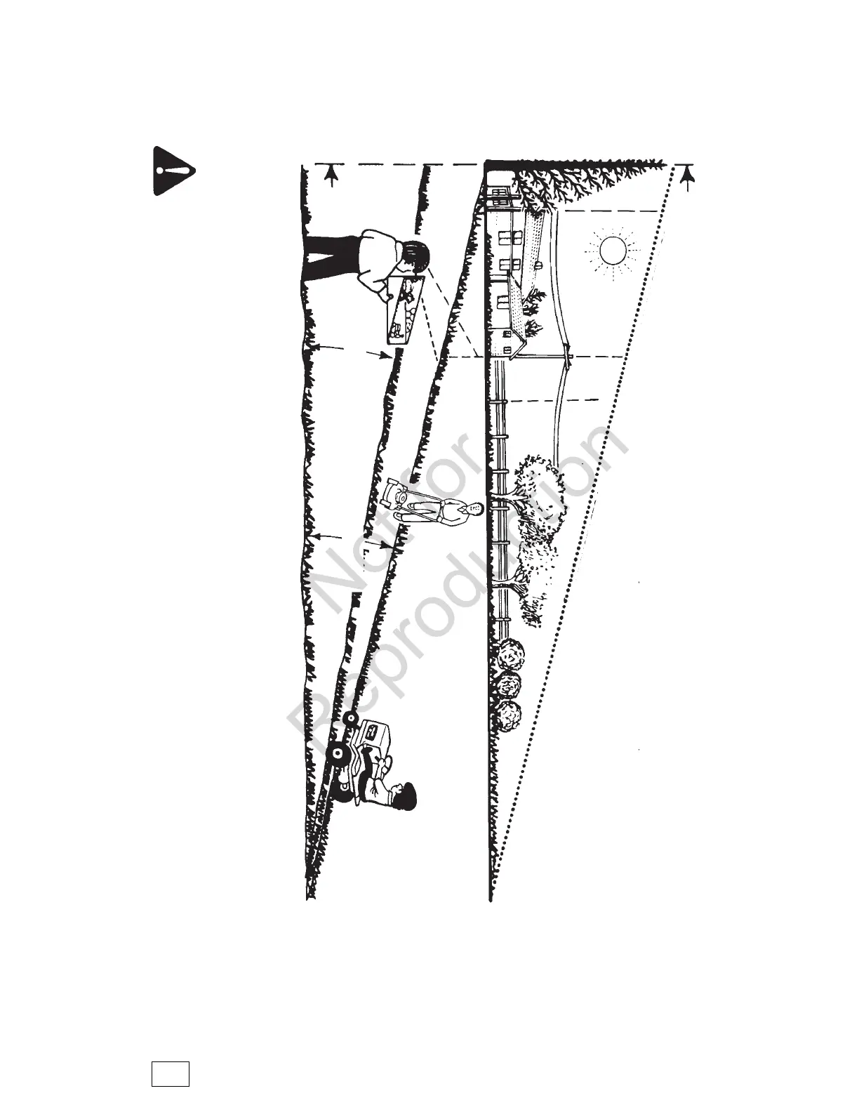 pentes. Utilisez une tondeuse autoportée en montant ou descendant la pente, jamais en travers. Par contre avec une tondeuse autoportée, travaillez en montant ou