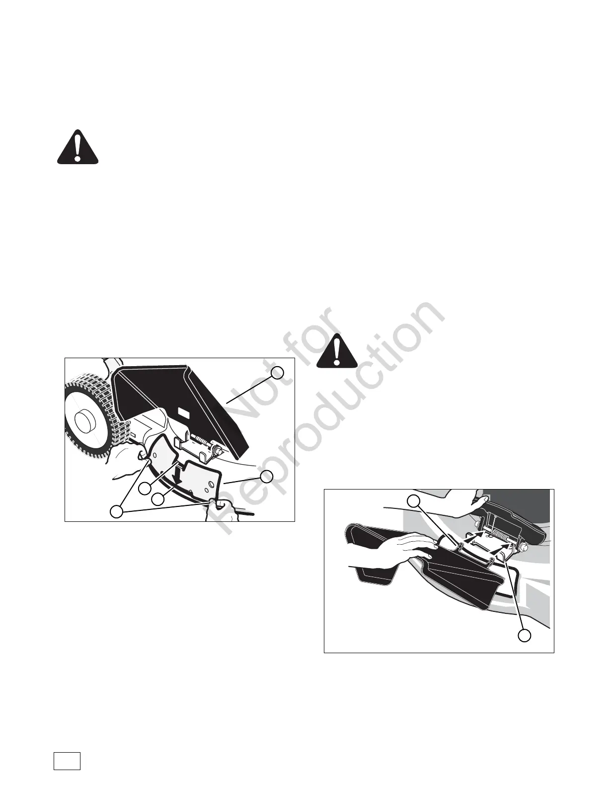 4. Mount the tab (E) on the bottom of the mulcher plate to