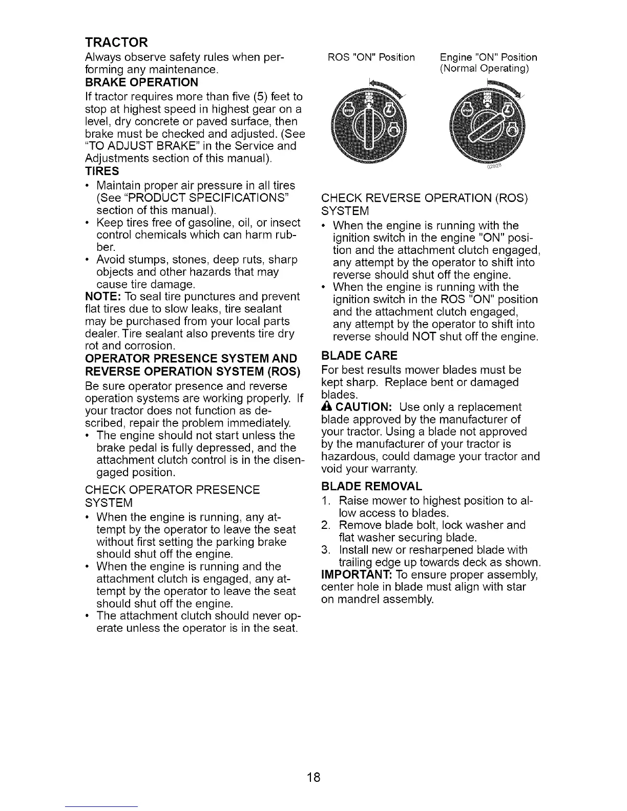 Be sure operator presence and reverse