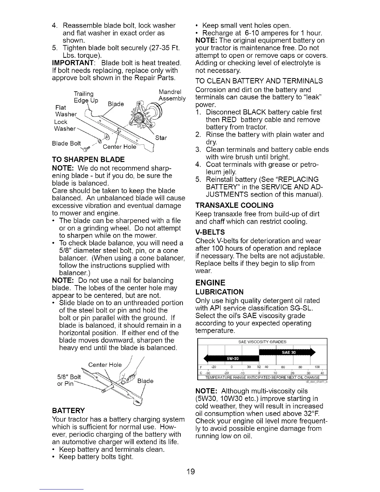 5. Tighten blade bolt securely (27-35 Ft.