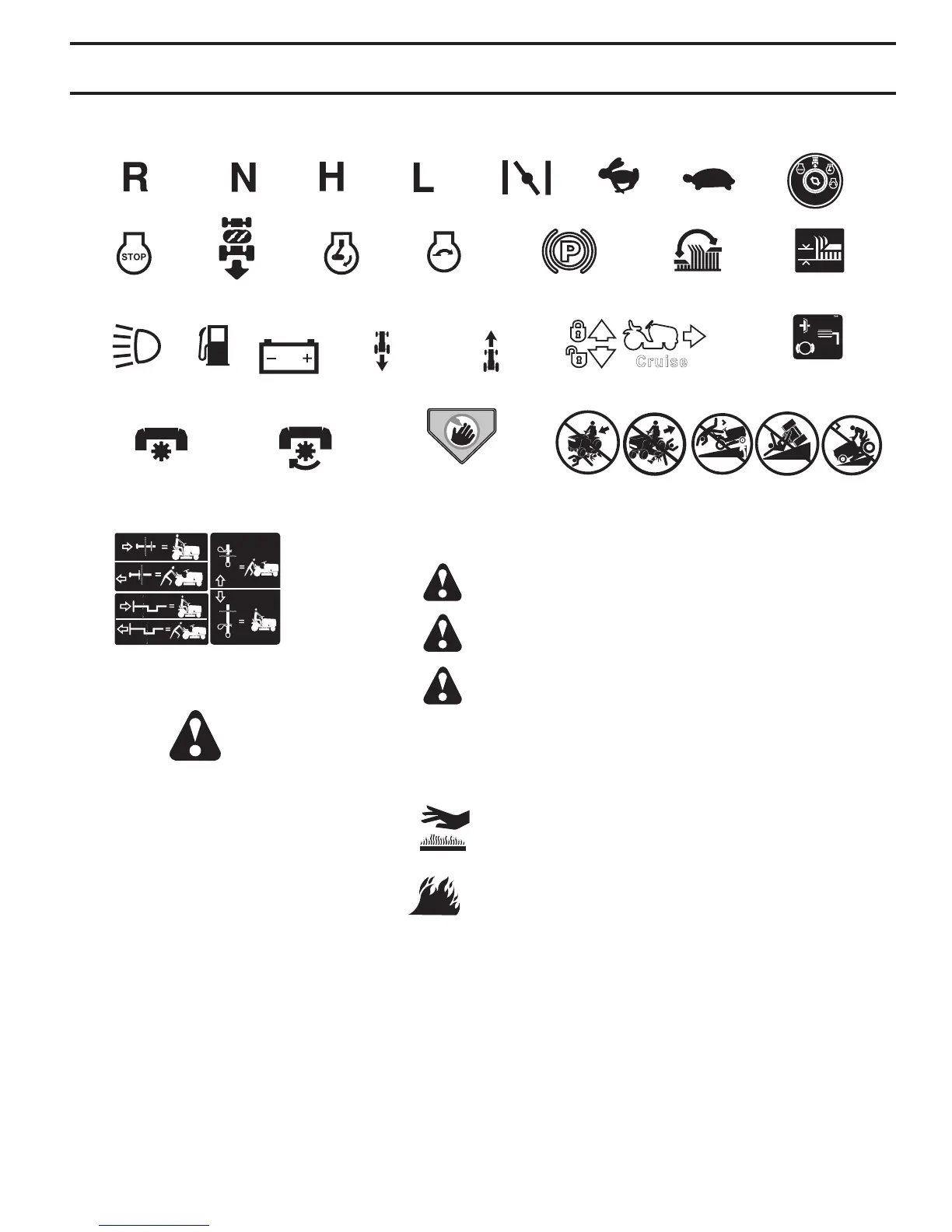 These symbols may appear on your tractor or in literature supplied with the product. Learn and understand their mean-