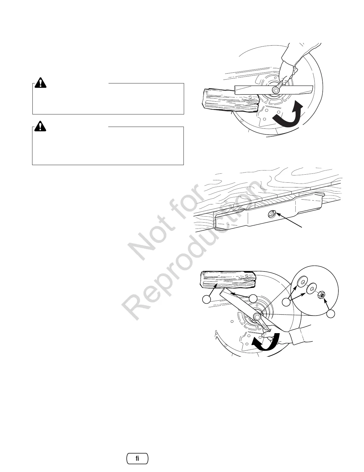 käsitellä leikkuukannen alapuolta. Estä terän pyöriminen