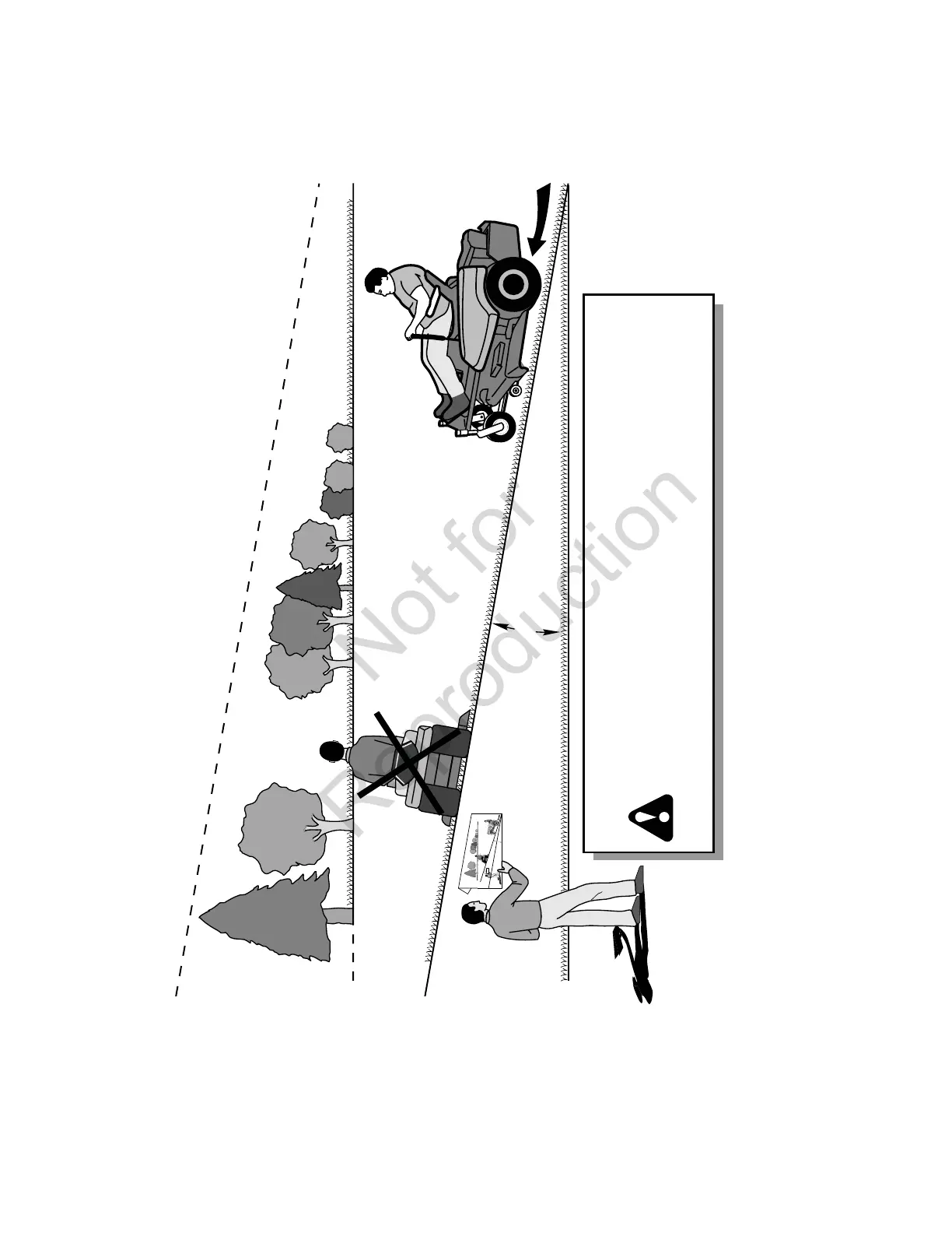 skersai nuokalnių. Nedirbkite su traktoriumi nuokalnėse, kurių šlaitai