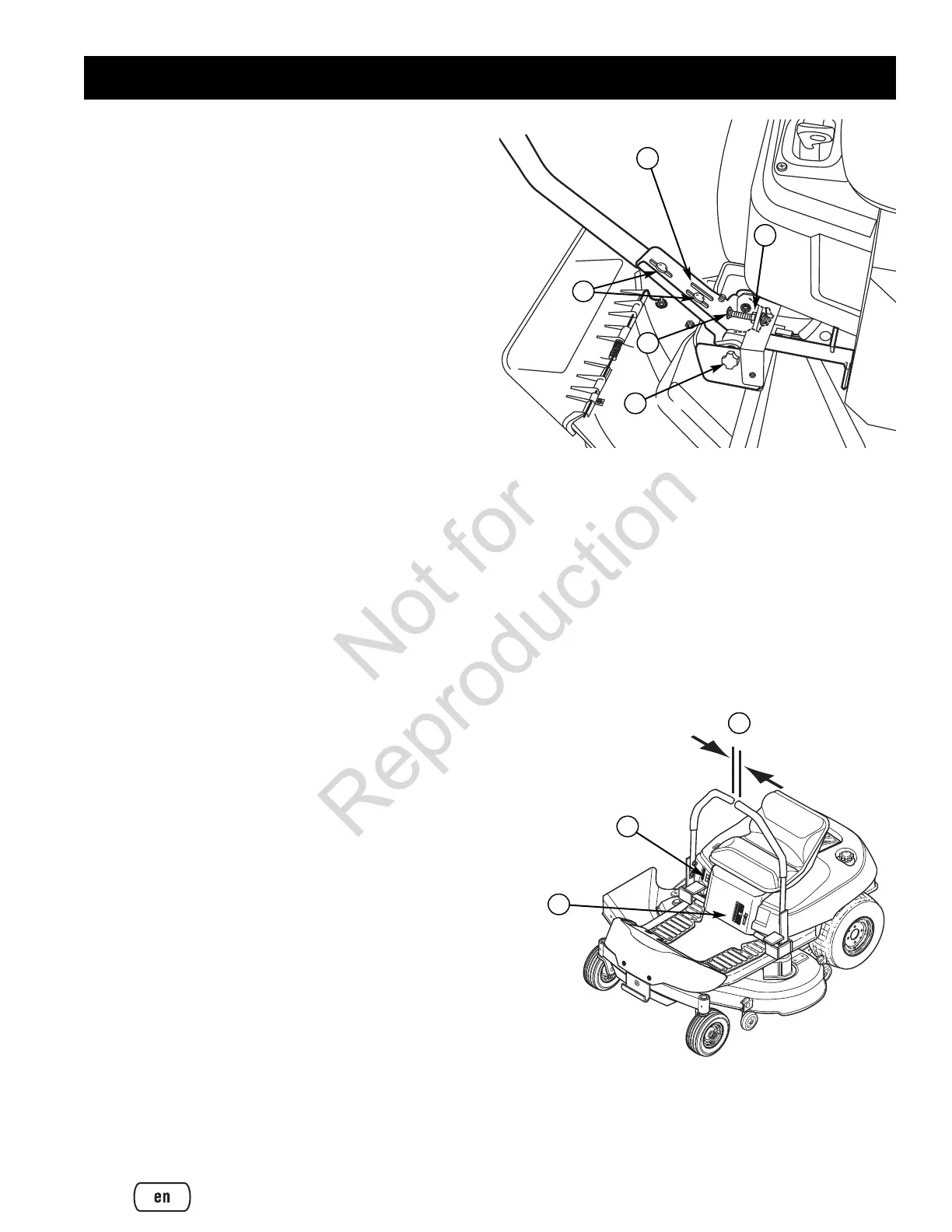 of the switch. Mower cutting height range is 3-3/4" to 1-