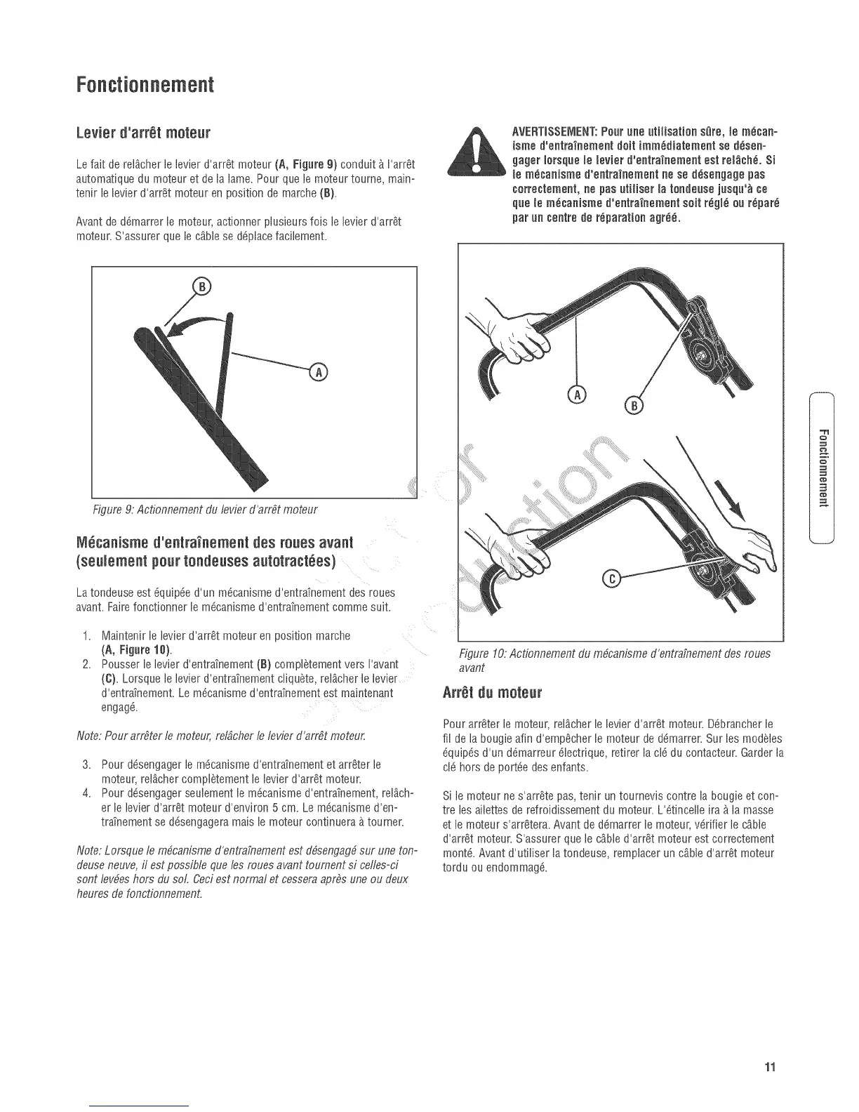Note:Pourarr#ter le moteur,re/#cherle levierd'arr#t moteur.