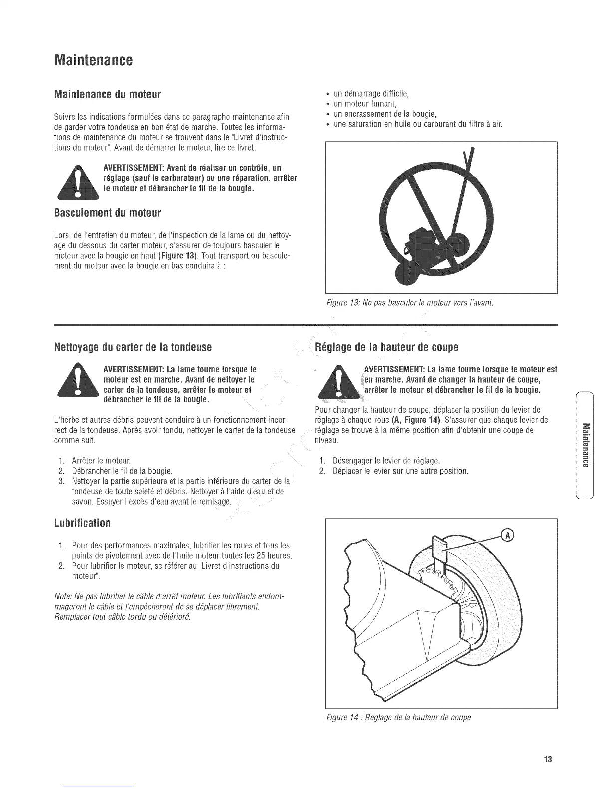 Lors de I'entretien du moteur, de I'inspection de la lame ou du nettoy=