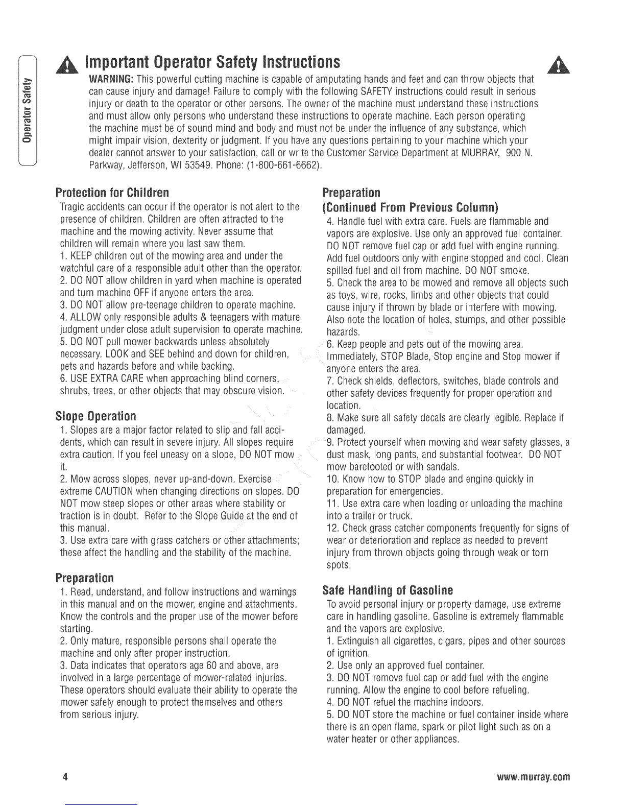 dealer cannot answer to your satisfaction, call or write the Customer Service Departmentat MURRAY, 900 N.