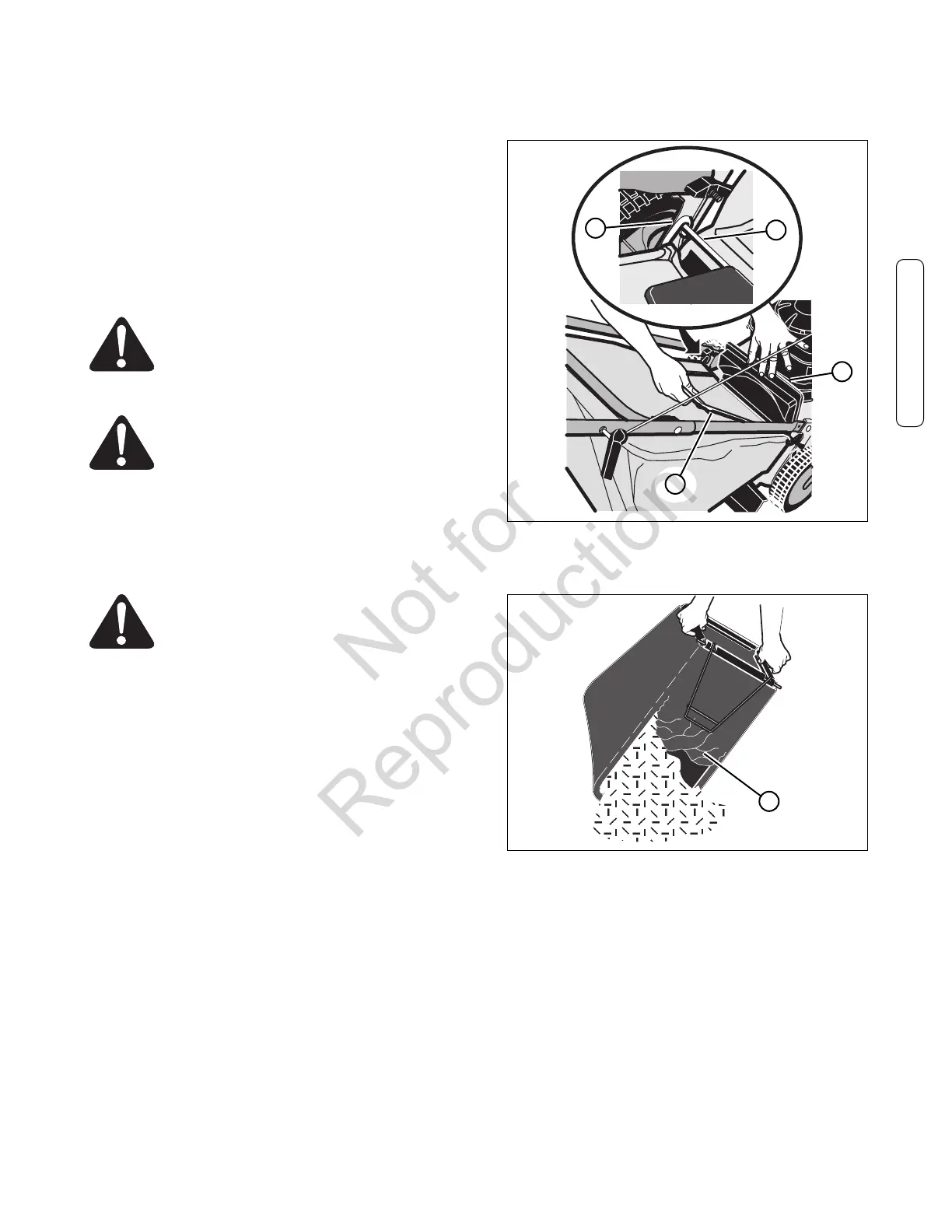 AVERTISSEMENT: Avant de déposer le bac à herbe,