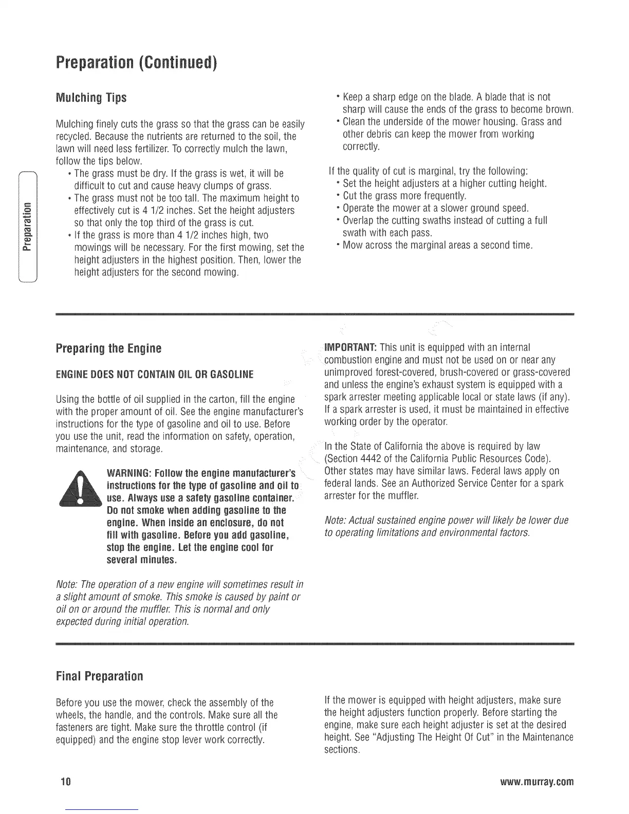 height. See"Adjusting TheHeight Of Cut" in the Maintenance