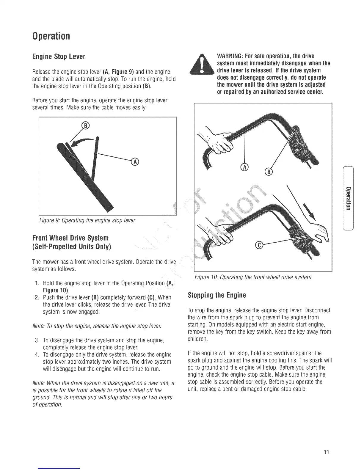 Releasethe engine stop lever (A, Figure 9) andthe engine
