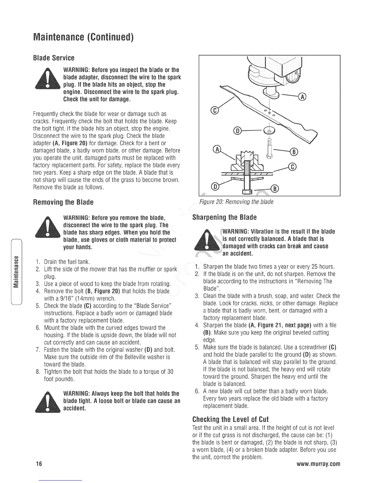 4. Removethe bolt (B, Figure 20} that holds the blade
