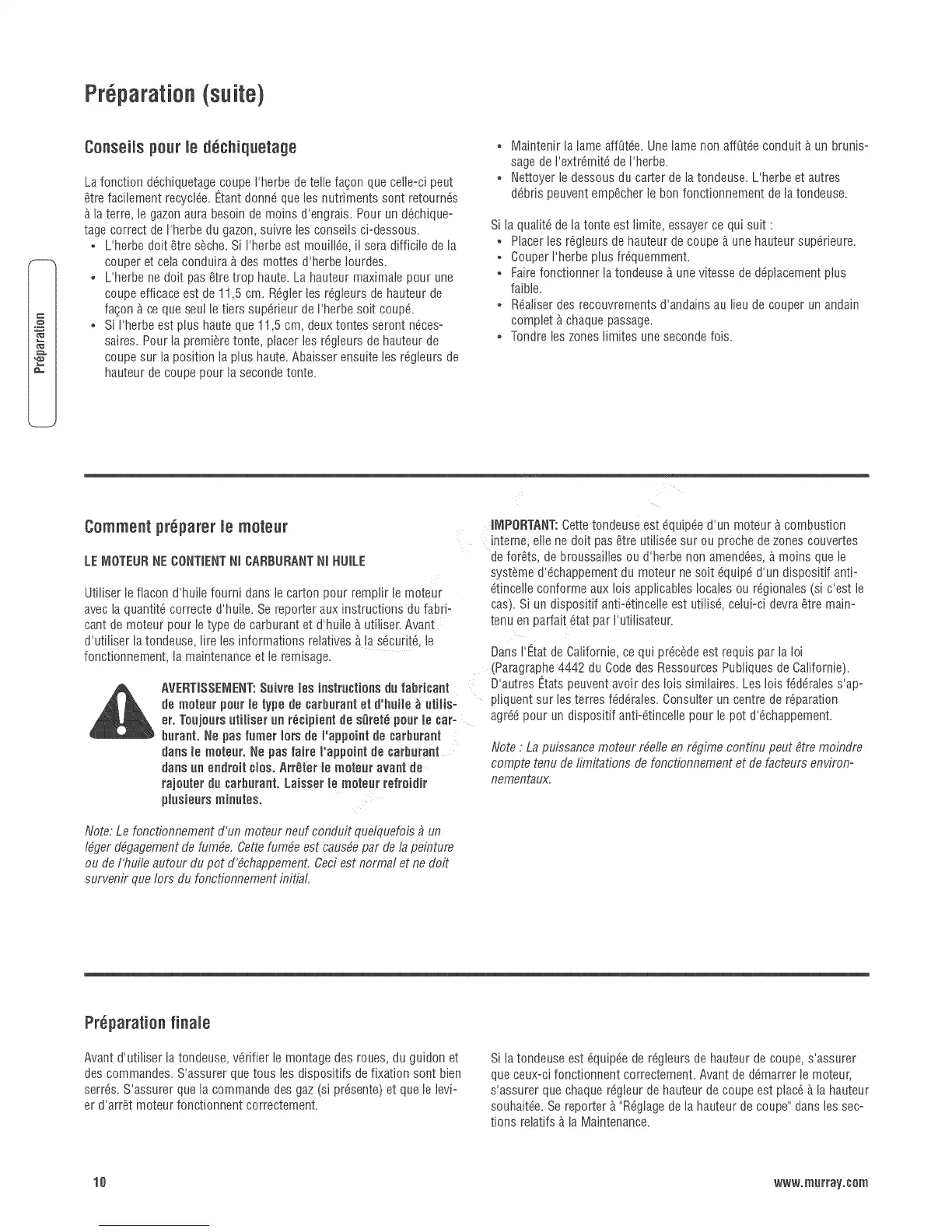Avantd'utiiiser la tondeuse,vdrifier le montagedesroues,du guidonet