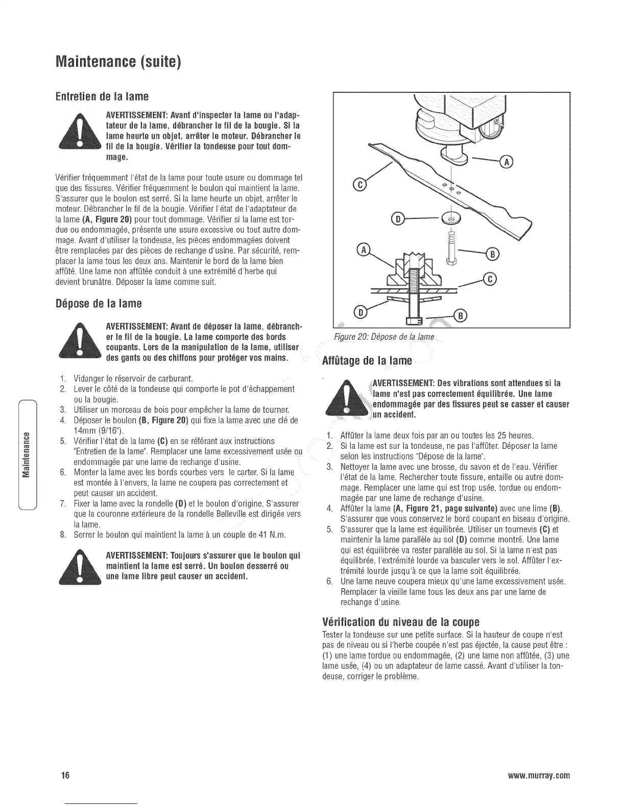 "Entretiende la lameLRemplacerunelameexcessivementuseeou