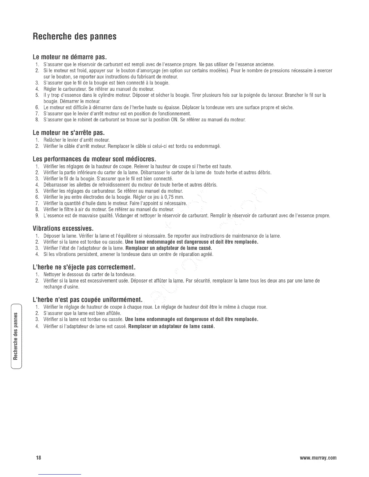 6= Le moteurest difficile _.ddmarrerdans deI'herbehauteou 6paisse.Ddpiacerla tondeusevers unesurfacepropreet seche=