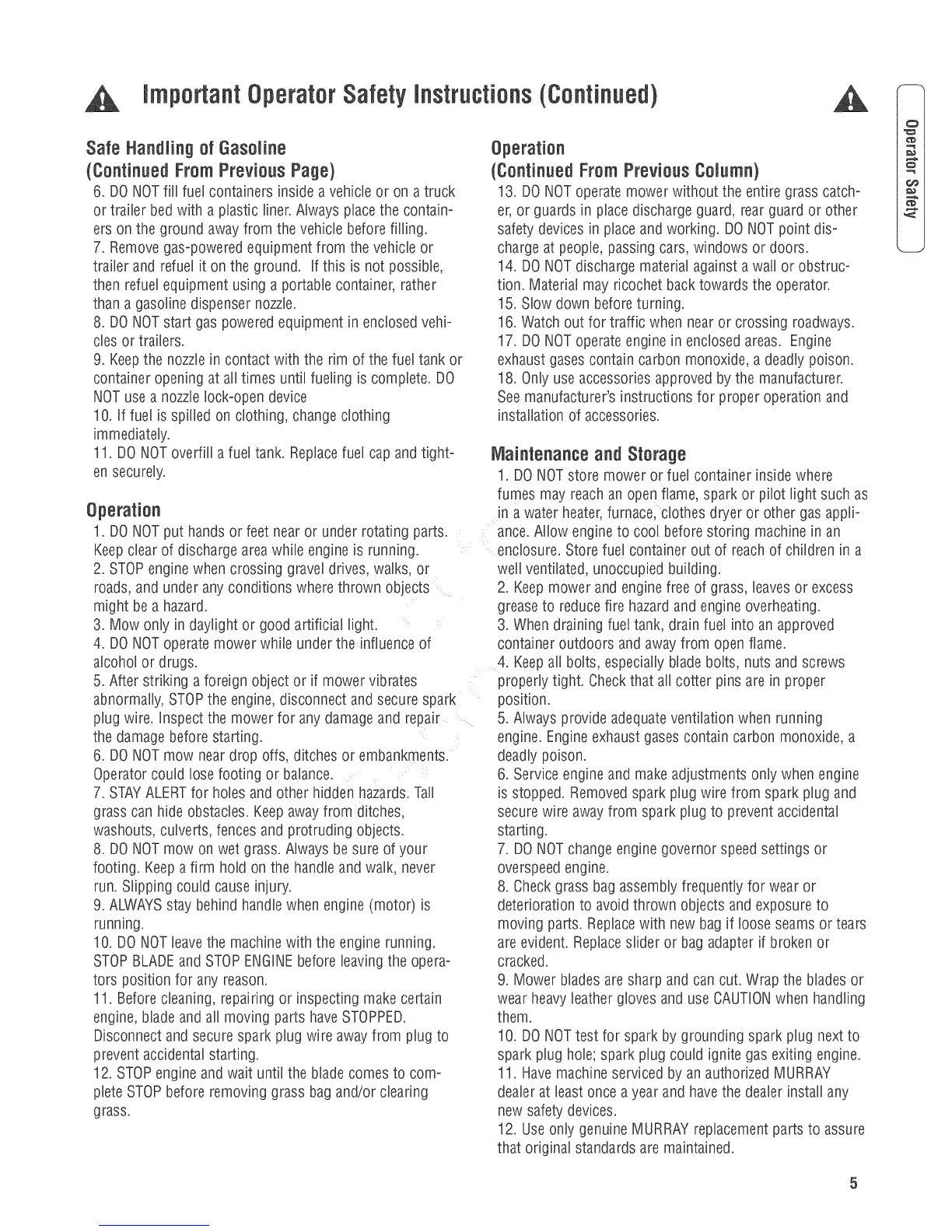 important OperatorSafety mnstructions(Continuedt