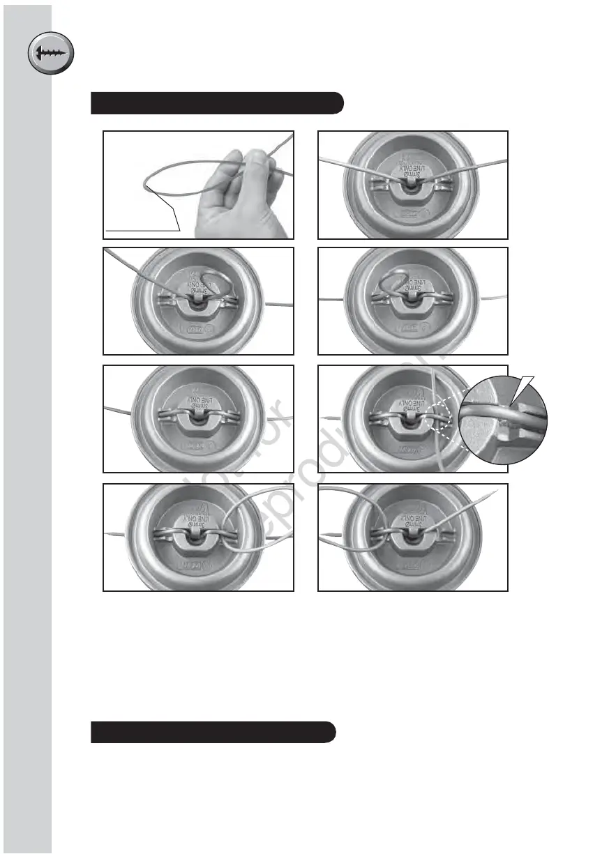 (7) Segure ambas as extremidades da nova linha juntas, puxe a linha antiga para fora da