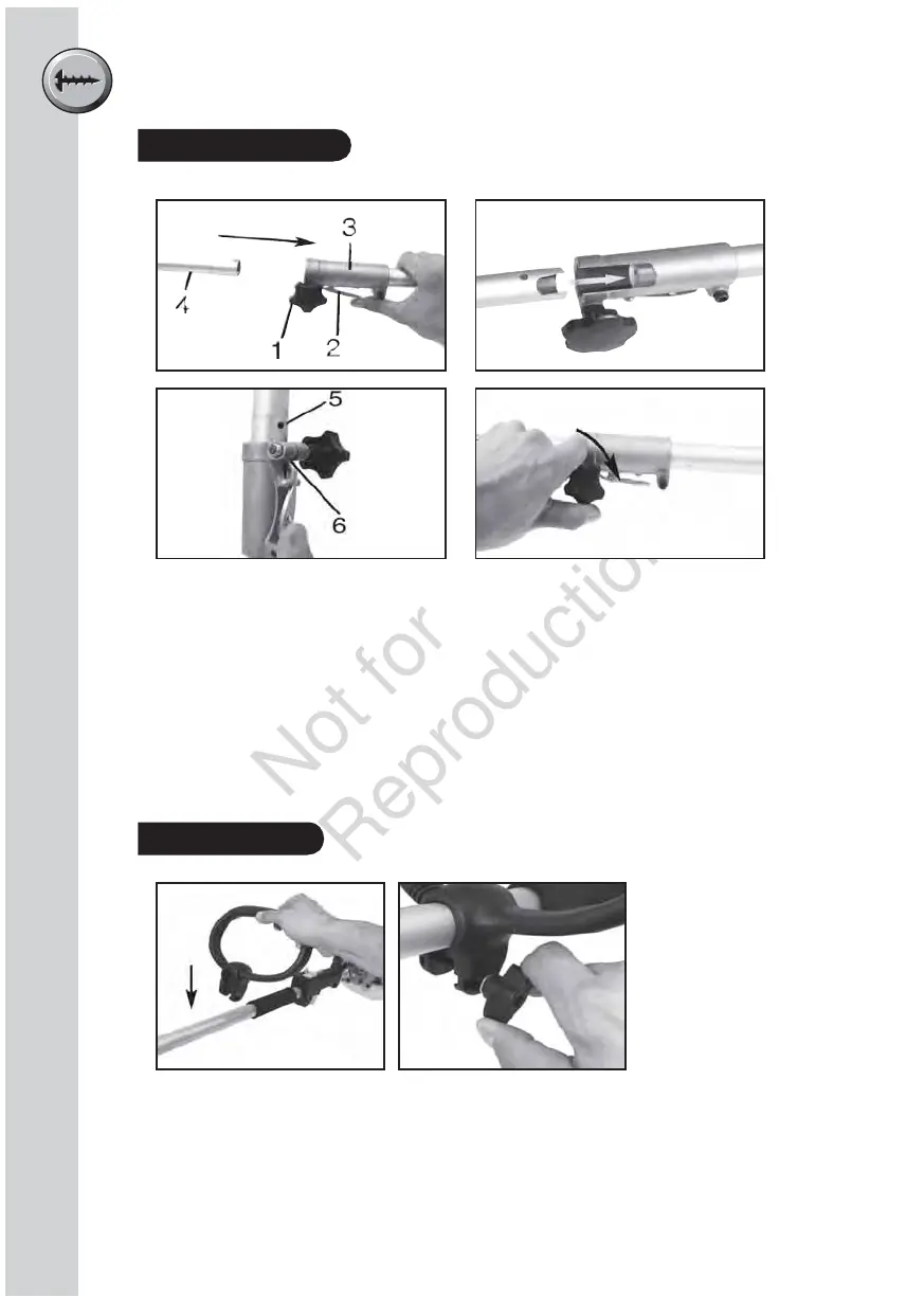 1 Slacken the wing nut on the fastening screw on the handle.
