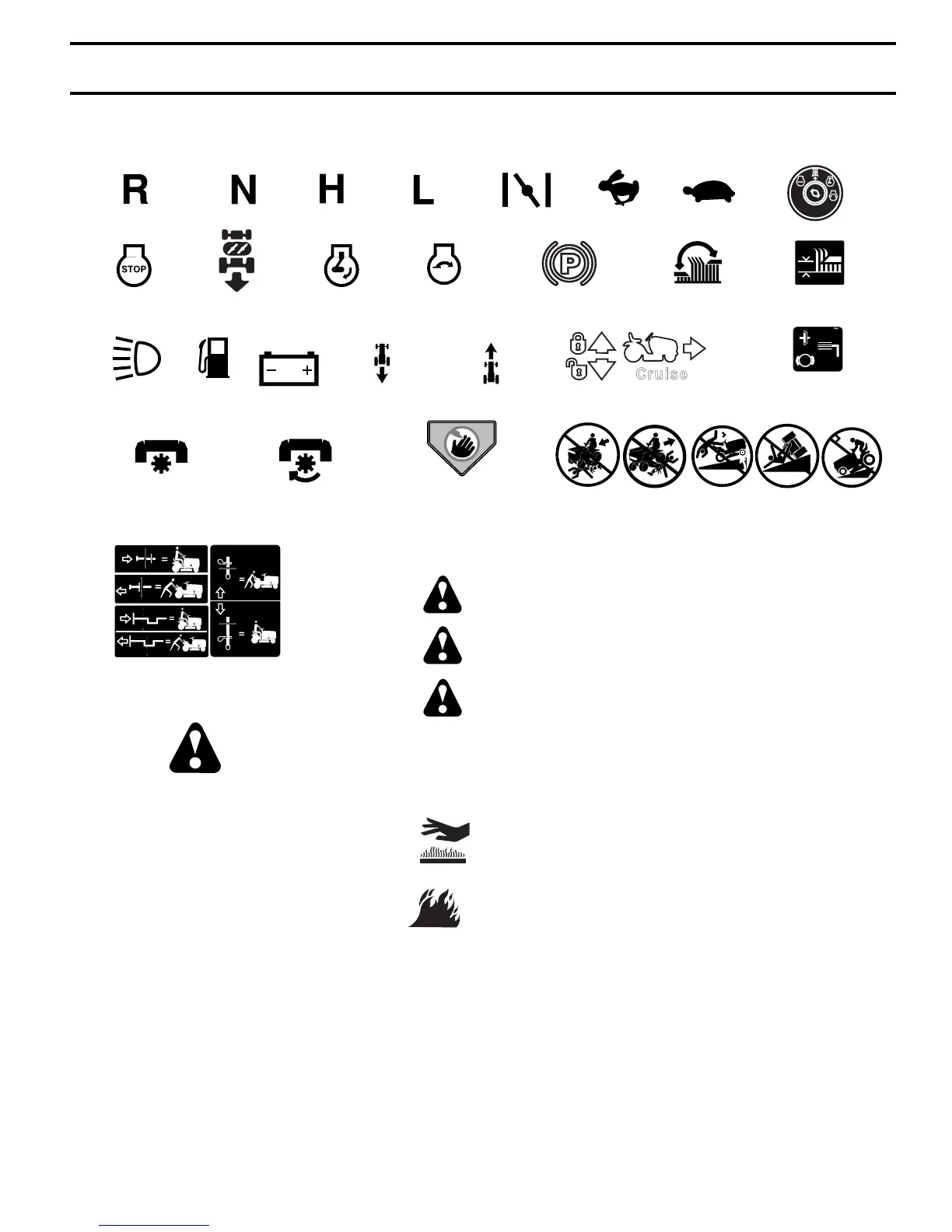 These symbols may appear on your tractor or in literature supplied with the product. Learn and understand their mean-
